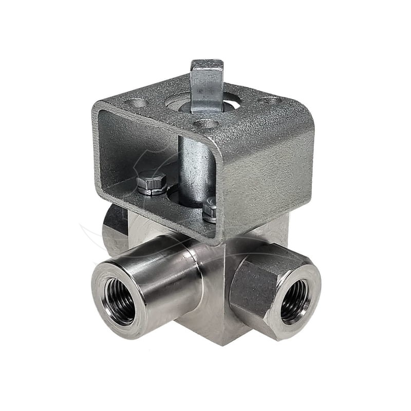 3-way ball valve made of stainless steel. 6mm passage. Permissible pressure 500 bar. Teflon seals.