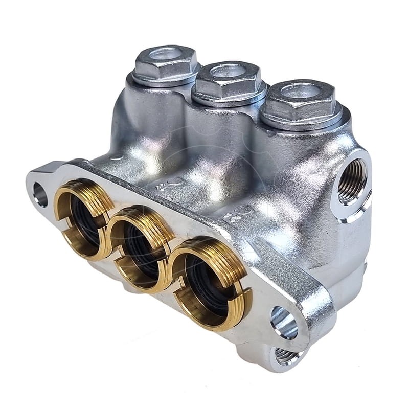 Complete chrome pump head for Cat 340 and Cat 350 pumps. Includes a set of check valves and seals with plugs.