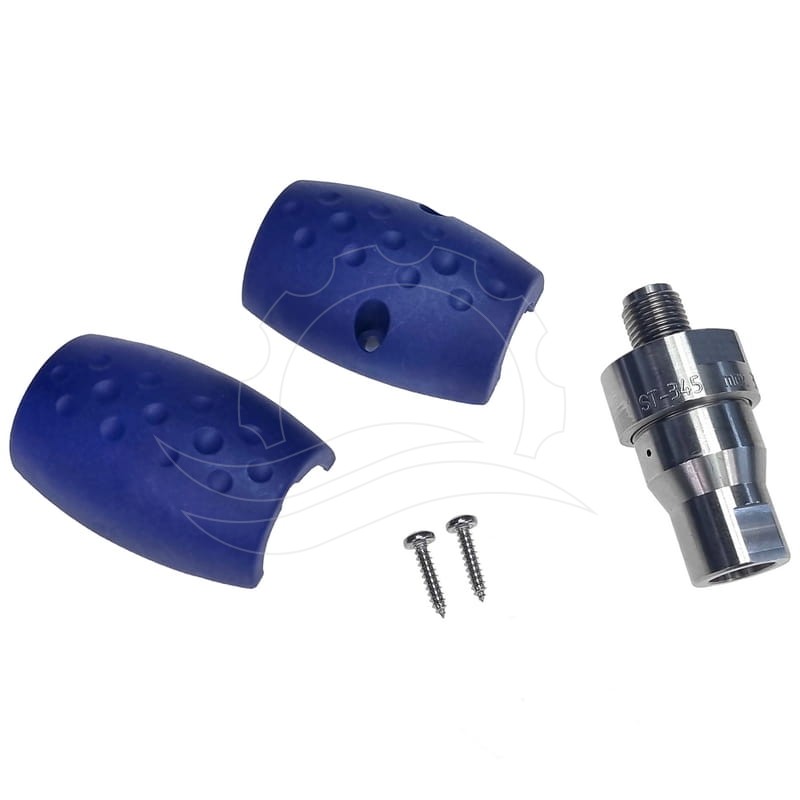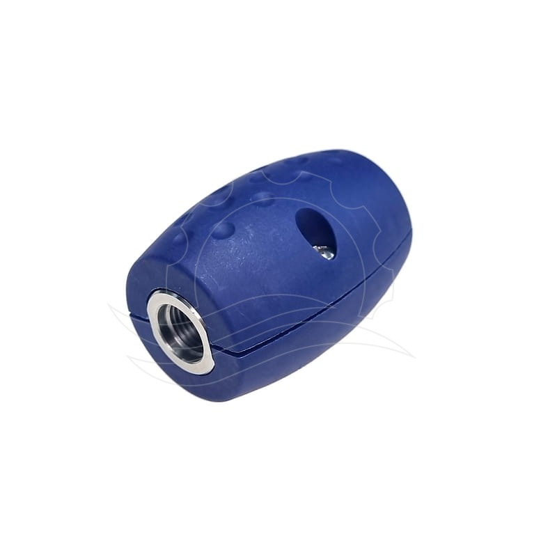 A blue swivel connector from Easywash365+. It's mounted between the lance and the gun/handle. It's often used on brushes 90cm or longer. The swivel feature makes it much easier to operate the lance during washing.