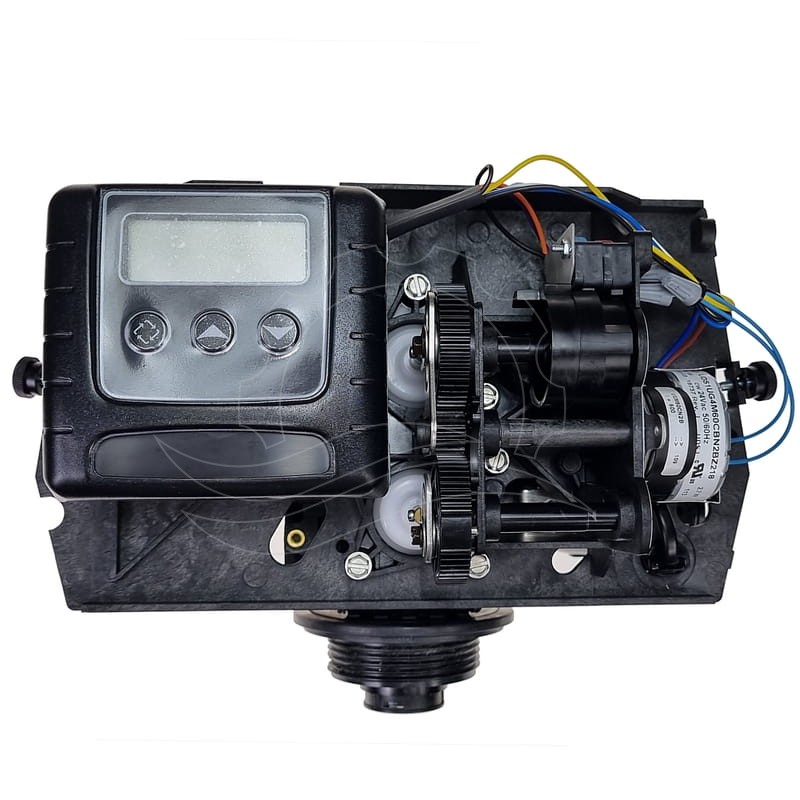 The Fleck 9100 softener head is available in Ehrle and BKF car washes. This model is designed for dual-cylinder systems.