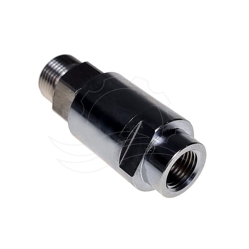 Kothar G3/8"F-M18x1.5M straight swivel joint. Stainless steel and chrome-plated brass housing. Stainless steel shaft with a 9mm flow diameter. Max pressure 300 bar, max temperature 120°C.