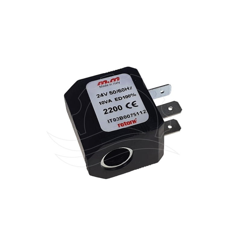 M&M brand solenoid valve coil, 10VA, powered by 24V AC. Suitable for solenoid valves: B203, B204, B205, B206.