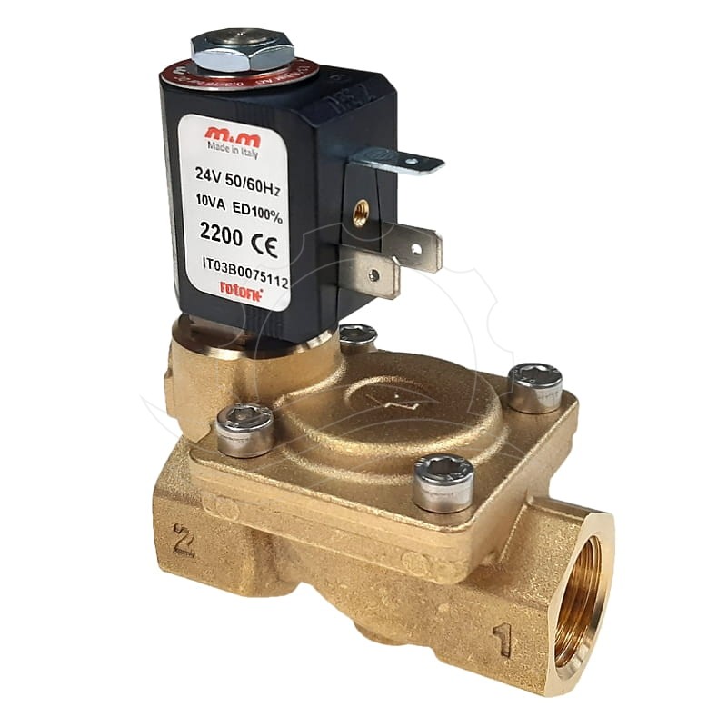 M&M indirect solenoid valve. Normally closed. Power supply voltage: 24V AC. Factory installed in Wash Italia car washes, among others. Can be used to control the flow of clean water or water with a non-aggressive chemical. Repair kits VK-022 and VK-040 are available for this model.