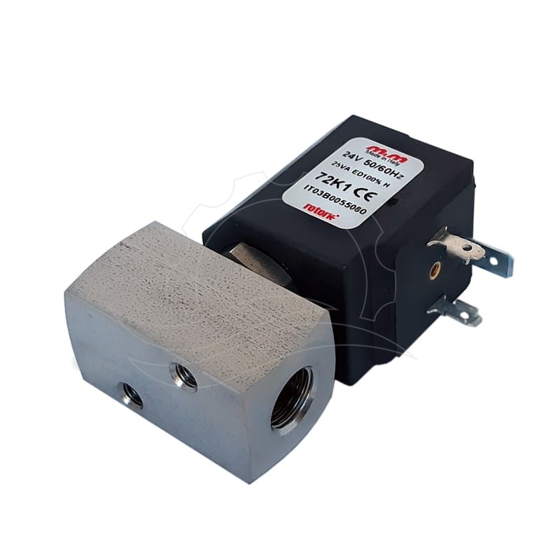 M&M high-pressure solenoid valve. Used as a pressure relief valve during operation of the anti-freeze water circulation system. Factory-installed in Ehrle Modulline car washes. Designation: MV4. Replaceable VK-021 cartridges are available for this model.
