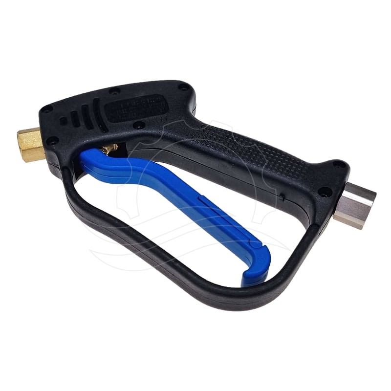 The Aura gun from the Italian manufacturer MTM Hydro. The gun is equipped with a relief valve that operates at both low and high pressures. The valve version has a flow rate of 1.1 l/min. The gun has a swivel G3/8"F connector on the hose side and a G1/4"F opening on the lance side. This Aura gun model was often found in BKF car washes. It was discontinued in 2024. Instead, we recommend guns with the same parameters: the WG25 from the same manufacturer (LG-027) or the MV925 by Tecomec (LG-006).