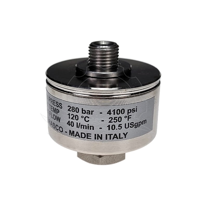 MTM Hydro G1/4''F-G1/4''M angular swivel joint. Nickel-plated brass housing. Stainless steel shaft with a flow diameter of 7mm. Max pressure 280bar, max temperature 120°C.