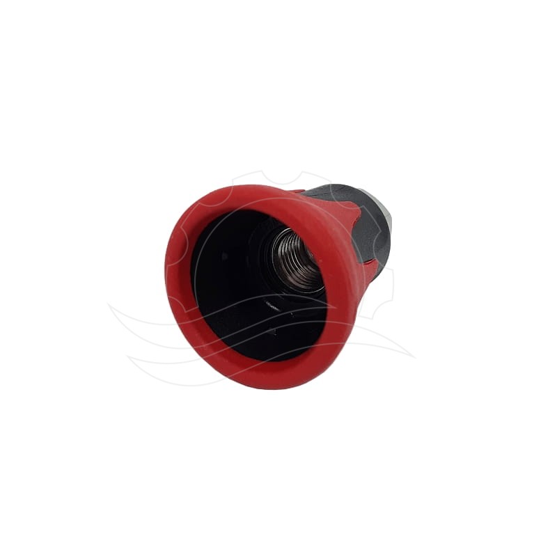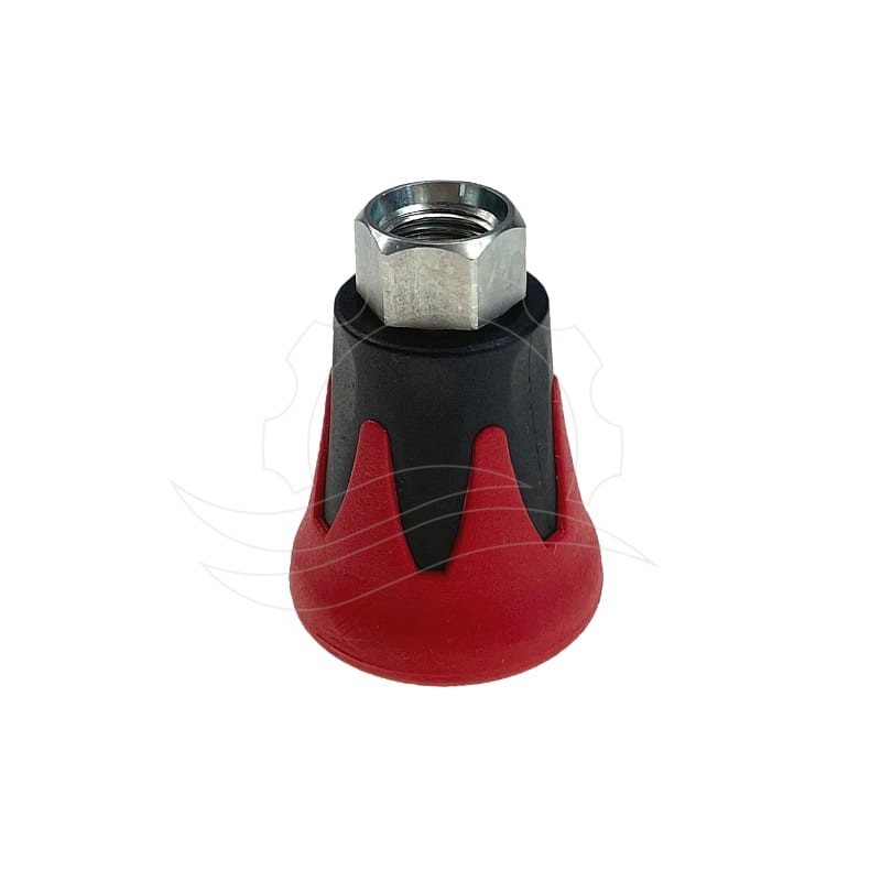 The R+M Suttner nozzle guard is available in red and black. It's made of two types of plastic, effectively protecting both the nozzle itself and the surfaces being cleaned from accidental scratching. The inner part is made of a hard material, while the outer part is made of a more flexible material. The core is made of galvanized steel. 1/4" thread.
